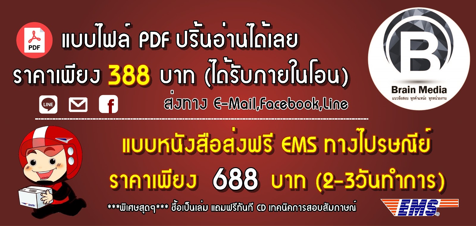 -แบบหนังสือส่งฟรีEMS ทางไปรษณีย์ ราคา 688 บาท (2-3วันทำการ)