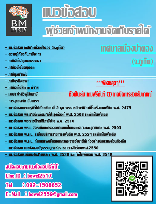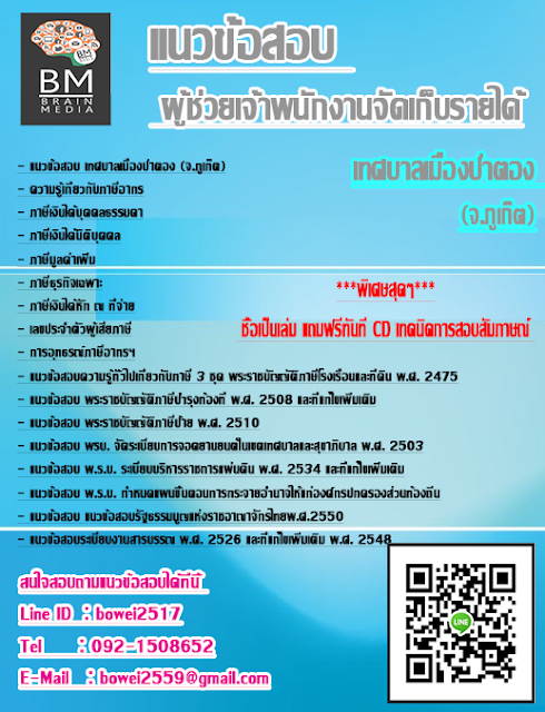 โหลดแนวข้อสอบ ผู้ช่วยเจ้าพนักงานจัดเก็บรายได้ เทศบาลเมืองป่าตอง (จ.ภูเก็ต)