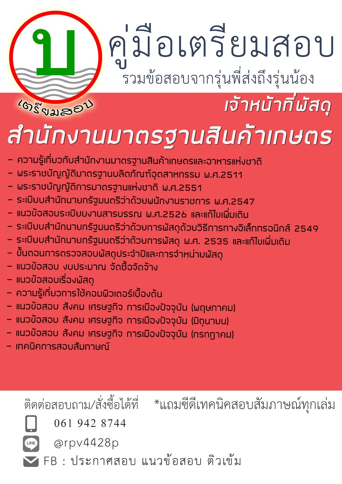 โหลดแนวข้อสอบ เจ้าหน้าที่พัสดุ สำนักงานมาตรฐานสินค้าเกษตรและอาหารแห่งชาติ