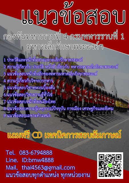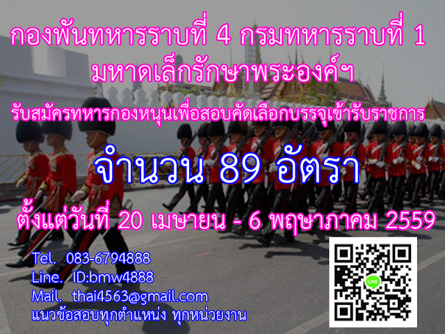โหลดแนวข้อสอบ กองพันทหารราบที่ 4 กรมทหารราบที่ 1 มหาดเล็กรักษาพระองค์ฯ