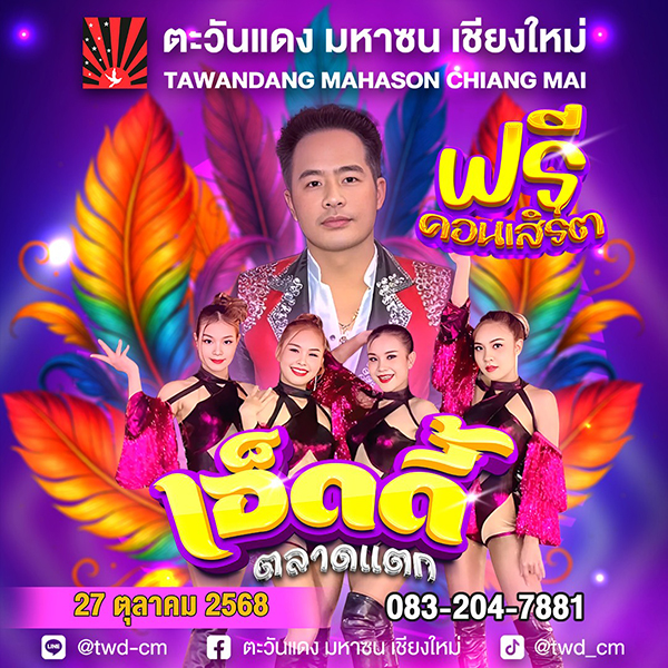 ฟรีคอนเสิร์ต “เอ็ดดี้ ตลาดแตก” @ ตะวันแดง มหาซน เชียงใหม่ (27 ต.ค. 68)